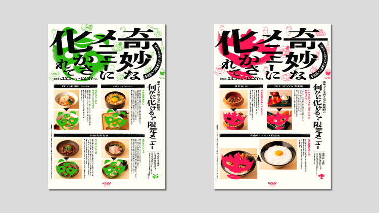 調味料をかけると色や味が変化する一皿、見た目と中身のギャップに驚かされる商品、食べ方によって二度楽しめる料理など、各店舗が工夫を凝らして開発した、食べる瞬間に仕掛けが起こる「化けるメニュー」を展開した。