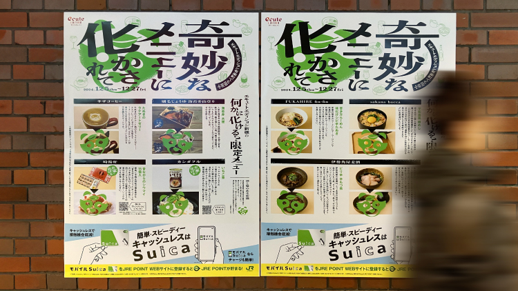 年末の忘年会シーズン。オフィスワーカーが行き交うエキュートエディション新橋と有楽町において、飲食街のにぎわいをさらに高めるための施策として企画されたのが「奇妙なメニューに化かされて」キャンペーン。